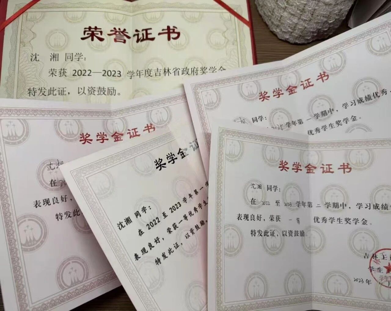 “立身以立学为先,立学以读书为本。”沈湘始终将学业作为立身之基,以沉静之心深耕学问,以勤勉之力求索新知。课堂上,她专注凝神、勤思善问,将知识点吃透悟透;课后,她以图书馆为常驻地,在书海中汲取养分,把碎片化时间转化为知识积累的增量。吉林省省政府奖学金的殊荣,五次一等奖学金、一次二等奖学金的累积,以及两度“学习标兵”的称号,不仅是对她学业成果的高度认可,更是她日复一日坚守治学初心的生动注脚。这份对知识的敬畏与执着,为她后续跨界竞赛、多元实践筑牢了坚实的理论根基,也成为身边同学争相学习的勤勉标杆。